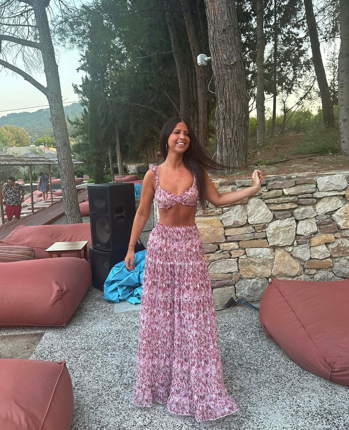 Graceful A-line tiered skirts with flowing layers for added movement.